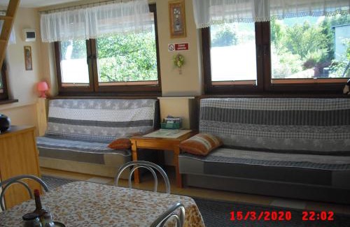 Domek HANA is a recently renovated vacation home in Radków where guests can make the most of the garden and barbecue facilities. Free Wifi is offered throughout the property and private parking is available on site. On clear days, guests can head outside to enjoy the vacation home's outdoor fireplace. The vacation home consists of 1 bedroom, a living room, a fully equipped kitchenette with a microwave and a kettle, and 1 bathroom with a shower and a hair dryer. Guests can enjoy a meal on an outdoor dining area while overlooking the mountain views. This vacation home is allergy-free and non-smoking. For guests with children, the vacation home features outdoor play equipment. If you like to discover the area, skiing, cycling and hiking are possible in the surroundings and Domek HANA can arrange a bicycle rental service. Polanica Zdroj Train Station is 12 miles from the accommodation, while Errant Rocks is 12 miles from the property.