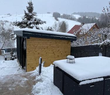 Featuring a garden, Domek w dolinie features accommodations in Berest. This property offers a private pool, free Wifi, and free private parking. On clear days, guests can head outside to enjoy the vacation home's outdoor fireplace. Providing a terrace and mountain views, the spacious vacation home includes 4 bedrooms, a living room, cable flat-screen TV, an equipped kitchen, and 2 bathrooms with a walk-in shower and a bath. Guests can enjoy a meal on an outdoor dining area while overlooking the pool views. This vacation home is allergy-free and non-smoking. Guests can make the most of the warm weather with the property's barbecue facilities. For guests with children, the vacation home provides an indoor play area, outdoor play equipment, and a baby safety gate. Guests at Domek w dolinie can enjoy billiards on-site, or go skiing or cycling in the surrounding area. Nikifor Museum is 7.3 miles from the accommodation, while Krynica Zdroj Train Station is 8 miles away.