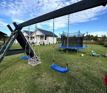 Offering a garden, Domki Nadmorska fala Rusinowo provides accommodations in Rusinowo. This property offers access to a terrace, free private parking, and free Wifi. Rusinowo Beach is a 16-minute walk away and Jaroslawiec Aquapark is 3.3 miles from the vacation home. This vacation home includes 2 bedrooms, a living room and a flat-screen TV, an equipped kitchenette with a dining area, and 1 bathroom with a shower. Guests can take in the ambience of the surroundings from an outdoor dining area. Guests can make the most of the warm weather with the property's barbecue facilities. For guests with children, the vacation home offers a children's playground. Cycling and hiking are possible within the area, and Domki Nadmorska fala Rusinowo offers a private beach area. Dukes of Pomerania Castle is 10 miles from the accommodation, while Ustka Pier is 19 miles from the property. Gdańsk Lech Wałęsa Airport is 95 miles away.