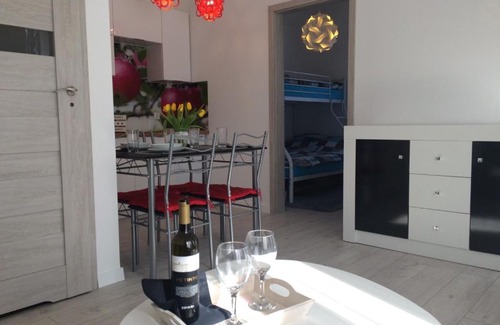 Featuring inner courtyard views, Domki Wśród Jabłoni in Gąski provides accommodations, a garden, and barbecue facilities. There's a private entrance at the vacation home for the convenience of those who stay. The vacation home also features free Wifi, free private parking, and facilities for disabled guests. The vacation home provides guests with a terrace, garden views, a seating area, a flat-screen TV, a fully equipped kitchenette with a dishwasher and a fridge, and a private bathroom with shower and a hair dryer. A stovetop and kitchenware are also offered, as well as a kettle. At the vacation home, units include bed linen and towels. For guests with children, Domki Wśród Jabłoni offers an indoor play area and an outdoor play equipment. The vacation home has a picnic area where you can spend the day outdoors. Gąski Beach is a 6-minute walk from the accommodation, while Pleśna Beach is 1.5 miles from the property. Solidarity Szczecin-Goleniów Airport is 80 miles away.