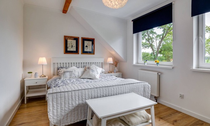 Located in gmina Wolin, this welcoming apartment lets you experience it all. Thanks to the convenient onsite parking, you can either leave your vehicle behind and let your feet make short work of the 12-minute walk to Wolin National Park, or easily tackle the 18-minute drive to Miedzywodzie Beach.