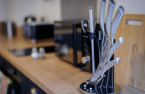 Food & DrinkBottle of water, Tea/Coffee makerBathroomToilet paper, Towels, Shampoo, Free toiletries, Hairdryer, Conditioner, Shower, Private bathroom, Body soap, ToiletMedia & TechnologyMobile hotspot device, Flat-screen TV, TVGeneralCarbon monoxide sources, Smoke Alarm, Key access, Hardwood or parquet floors, Trash cans, Carbon monoxide detector, Heating, Private entrance, Carpeted, Fire extinguisher, IronKitchenRefrigerator, Microwave, Toaster, Cleaning products, Electric kettle, Kitchen, Dining table, Washing machine, Oven, Wine glasses, Kitchenware, StovetopLiving AreaSitting area, Dining area, DeskBedroomLinens, Wardrobe or closetBuilding CharacteristicsPrivate apartment in building, DetachedRoom AmenitiesClothes rack, Hypoallergenic pillow, Socket near the bed, Non-feather pillow, Drying rack for clothingCleanliness & disinfectionHand sanitizer |