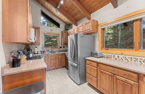 When summer rolls around, soak up the sunshine on the spacious front deck with views of the surrounding pines, or fire up the propane grill for an evening barbecue. Spend your days swimming, paddleboarding, or boating at nearby Donner Lake, or hit the hiking and biking trails that wind through the Sierra Nevada. Downtown Truckee is just a short drive away for dining, shopping, and local charm.
