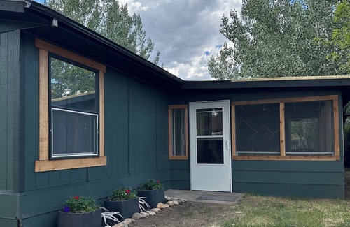 The Stolen Saddle welcomes you. Centrally located IN TOWN. Walk to hot pool, river and restaurants. Only 20 minutes from Ryan Park snowmobile parking area. Fully equipped kitchen w/ everything you need for coffee in the morning or to prepare a dinner. Cook out on the gas grill & enjoy evenings in the screened in porch. The screened in porch is a guest favorite. There is an extra large comfortable sectional. Washer & dryer available on site. The hot pool and restaurants are within walking distance. Downtown is 5 short blocks away from the house. Its so easy to relax at The Stolen Saddle! SNOWMOBILE trailer parking available on site. Enjoy 3 bedrooms with queen size beds (one bedroom has a king) and 2 full bathrooms. Everything is on 1 floor, no need to drag suitcases and bags upstairs. Lots of eating and lounging space available.