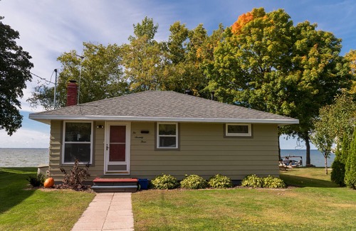 Excellent location for touring Door County and Green Bay. 20 Minutes to Sturgeon Bay, 20 Minutes to Green Bay, 30 minutes to Lambeau Field. Quiet waterfront cottage with breathtaking views of The Bay of Green Bay. Located on a private road, great for long walks and biking. Mid century furniture and appliances. Cottage Includes two kayaks & three bikes, cottage is air conditioned, Wi-Fi. 55" flat screen, fireplace, fire pit & pier. World class fishing area. Conveniently located close to nice restaurants, shopping and state parks. Pier comes out in September due to water temperature.