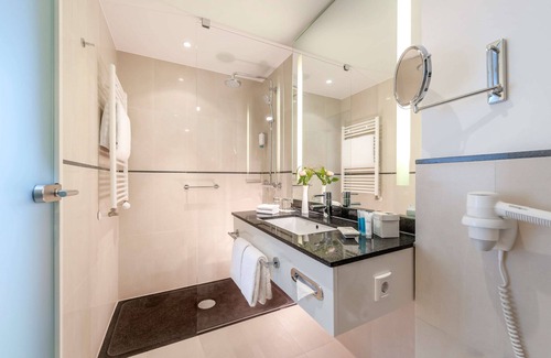 Dorint Hotel Hamburg-Eppendorf offers 195 accommodations with laptop-compatible safes and coffee/tea makers. Pillowtop beds feature down comforters and premium bedding. 32-inch LCD televisions come with cable channels. Bathrooms include showers with rainfall showerheads, complimentary toiletries, and hair dryers.