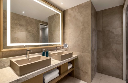 DoubleTree by Hilton Toyama offers 201 accommodations with safes and slippers. Beds feature premium bedding. 55-inch flat-screen televisions come with premium digital channels.