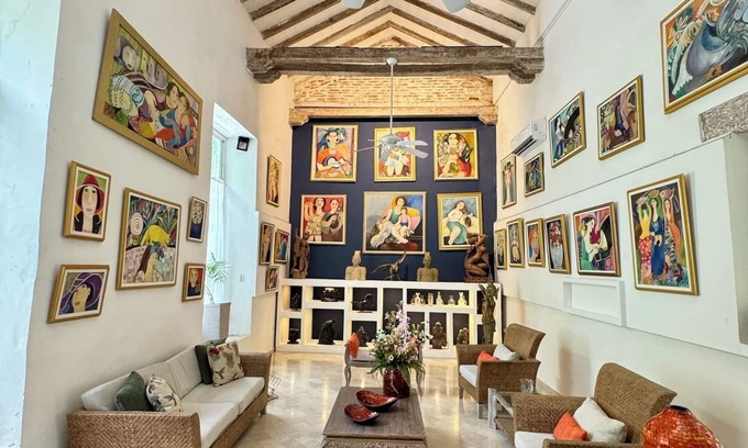 Our colonial home is a treasure trove of family artistry. The Gil family, Spanish artists with deep roots in this region, has filled this space with generations of creativity. Our grandfather, the celebrated painter and sculptor Eladio, left an enduring legacy with masterpieces like the India Catalina Monument. My grandmother Fini's vibrant, avant-garde paintings complement my mother María José's masterpieces, creating a dynamic artistic space.