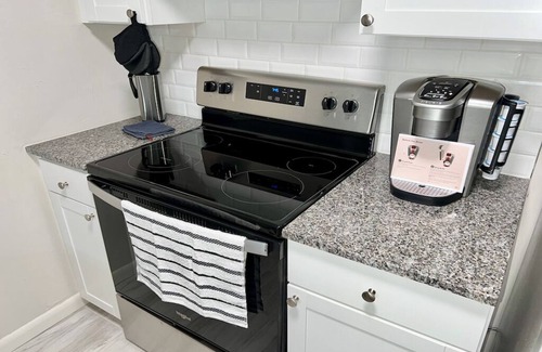 Includes fast WI-FI (500 mbps) , fully equipped kitchen, 60 inch Smart Roku tv in living room as well as smart tvs provided in each room, fenced in backyard with picnic table and grill (charcoal not included), washer/ dryer free of charge and much more. Each room is set up to make you feel at home which includes blackout curtains.