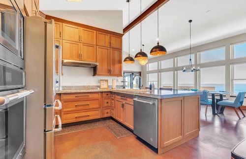 With gorgeous views both inside and out, this 3-bedroom, 3-bath vacation rental boasts a getaway you'll be dreaming of for years to come. Situated along the Manchester coast just one mile from Irish Beach, the 2,045 sq ft property offers ideal proximity to trails and even a private beach, and plenty to do on-site, too. So when you're not exploring in state parks or sipping your way through wine country, choose to relax at home in the hot tub or sunset cocktails on the ocean-view porch.
