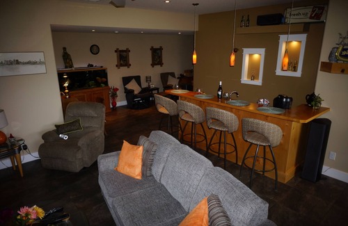 Feel like you are at home when entering your private suite, either through the B&B main door or private patio doors. A queen size bed with luxurious bedding awaits you, along with a beautiful private bathroom. The B&B living room is only shared with the other suite. Start your day with a presentation of local fresh fruit and baked goods. Continental style breakfast items also included. Also available is a Keurig coffee machine, kettle, toaster, dishes and microwave oven. No cooking facilities or BBQ use.