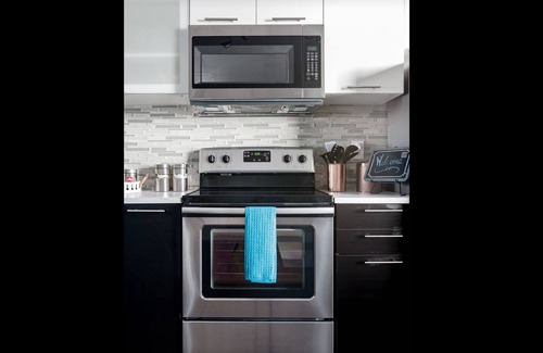 -Stove, refrigerator, toaster, microwave, oven, k-cup coffee maker