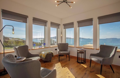 Amenities: Air sourced heat pumps. Electric oven and hob, microwave, fridge/freezer, wine cooler, washer/dryer, dishwasher, coffee machine, hairdryer. Smart TV with Freeview, WiFi. Fuel and power inc. in rent. Bed linen and towels inc. in rent. Highchair available. Off-road parking for 4 cars. Front patio with furniture and sea views. One well-behaved dog welcome. Sorry, no smoking. Shop 2.5 miles, pub 2.6 miles, beach 0.1 miles. Note: Check-in from 4pm, check-out at 10am. Please note: This property can only accept bookings coming in on a Friday. Please note: please confirm with Sykes if booking the property for work purposes. Please note: this property accepts minimum 7 night stays