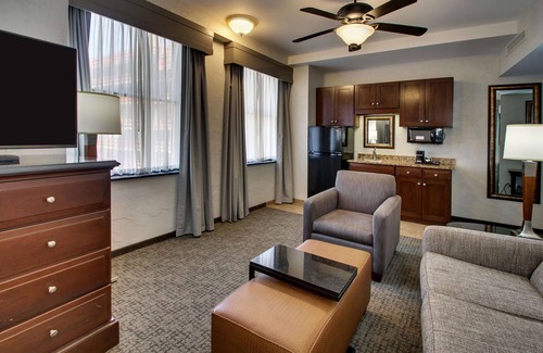 Drury Plaza Hotel San Antonio Riverwalk offers 380 accommodations with safes and coffee/tea makers. Beds feature premium bedding. LCD televisions come with cable channels. Guests can make use of the in-room refrigerators and microwaves. Bathrooms include shower/tub combinations, complimentary toiletries, and hair dryers.