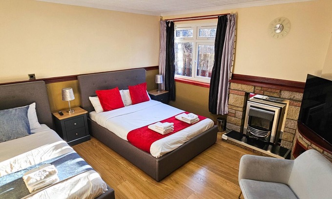 Welcome to Duddingston Guest House this spacious 9-bedroom house in Edinburgh, is ideal for families, couples and single travellers.You booked Room 9: Double bed and single bed - ground floor The house is spread across two floors (ground and first), with a single flight of stairs connecting the levels. There is a shared toilet-only facility, one shared bathroom with dual showerheads, and a second shared bathroom with a luxurious shower with a jet function for a spa-like experience. Additionally, Room 3 benefits from a private ensuite for added convenience.Guests will enjoy access to two fully equipped shared kitchens, providing ample cooking space for meal preparation with everything you need. The shared dining area, located in the sunroom at the back of the property, offers a bright and inviting space to enjoy meals together.For those arriving by car, the property has free on-street parking available on a first-come, first-served basis. Our check-in method is simple and convenient: Self-check-in is the only option, with the key securely stored in a key safe at the property.The iconic Arthur’s Seat is just a short distance away, offering breathtaking views of the city and scenic walking trails. Holyrood Park provides an excellent outdoor escape, while history lovers can visit Holyrood Palace and the historic Royal Mile, filled with charming shops, cafes, and cultural landmarks.With its spacious rooms, modern amenities, and excellent location, Duddingston Guest House is the perfect base for exploring Edinburgh.