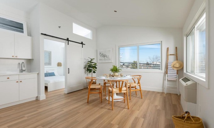 BathroomTowels/Sheets (extra fee), Hairdryer, Private bathroom, Toilet, Shampoo, Conditioner, Body soap, Shower, Towels, Free toiletries, Toilet paperMedia & TechnologyFlat-screen TV, Streaming service (like Netflix), TVGeneralCarbon monoxide detector, Trash cans, Private entrance, Smoke Alarm, Air conditioning, Iron, Heating, Hardwood or parquet floorsKitchenKitchenette, Dining table, Coffee machine, Kitchenware, Cleaning products, Refrigerator, MicrowaveLiving AreaSofa, Sitting areaBedroomChildrens' cribs, Alarm clock, Linens, Wardrobe or closetAccessibilityEntire unit located on ground floorRoom AmenitiesSocket near the bed, Clothes rackPhysical distancingSingle-room AC for guest accommodation |