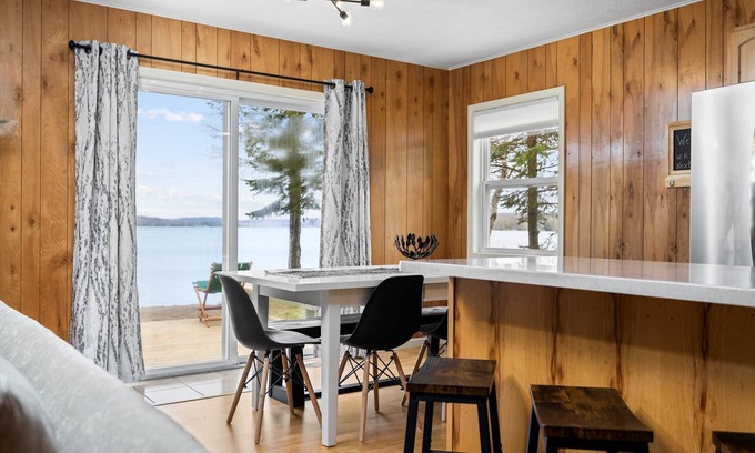 This recently updated cottage features two inviting bedrooms, including a king bed with en suite bathroom, as well as a bunk bedroom featuring a double and single bed, plus a pull-out couch that comfortably sleeps two, providing ample space for up to 7 guests to relax and rejuvenate. Each bedroom and the living room come equipped with a smart TV to help the little ones rest or to pass time on a rainy day! Enjoy the convenience of a modern 1.5 bathroom setup, ensuring comfort and privacy for all.