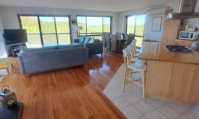 2 minute walk to the beach, NOT 8 minutes as automatically calculated by Stayz/VRBO.