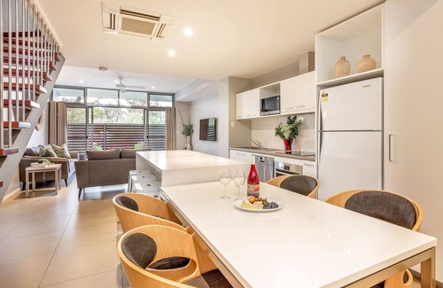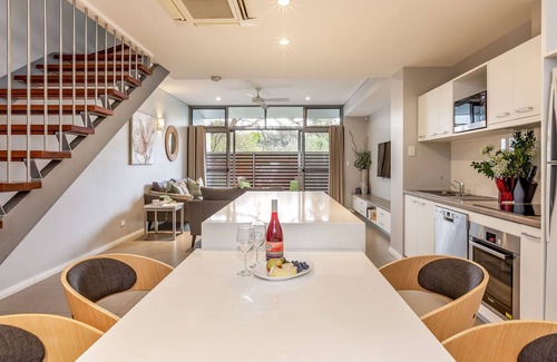 This gorgeous two-storey luxury apartment in central Dunsborough is the ideal base for your next visit to the Margaret River Region.Couples, friends and families will enjoy the proximity to everything on offer. You are just a short stroll to the town's shops, galleries, cafes and restaurants and even closer to the beach which is just 150 metres away! A fantastic children's playground is also located directly across the street.