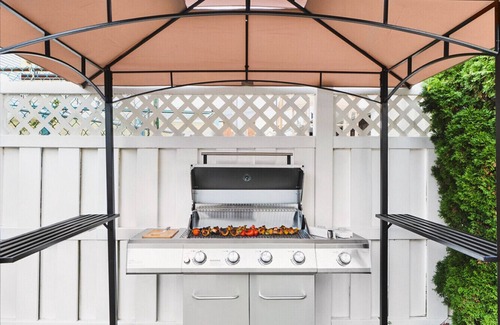 Luxurious Amenities: Enjoy a hot tub, grill, outdoor games, gym, and lush turf—all in a sleek urban oasis.