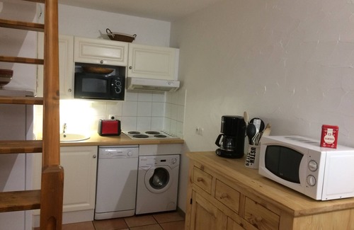 Kitchen area: electric hob, extractor, mini-oven, microwave, washing machine, fridge, dishwasher, small appliances (toaster, coffee maker, raclette machine, fondue machine, kettle, blender ...) .