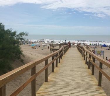 DUPLEX Casa 100 m2 CARILO HOUSE Complejo Residencial Sin Serv offers accommodations in Carilo, a 5-minute walk from Playa Cariló and 1.4 miles from Playa Valeria del Mar. This beachfront property offers access to a patio, free private parking, and free Wifi. The vacation home features an outdoor swimming pool with a fence, as well as a solarium and full-day security. Featuring a balcony and garden views, the vacation home includes 2 bedrooms, a living room, flat-screen TV, an equipped kitchen, and 2 bathrooms with a bidet and a bath. Guests can also relax in the garden or on the sun terrace.