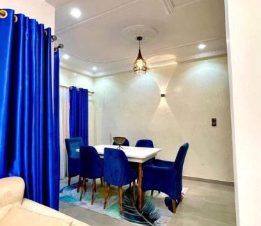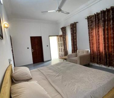 DUPLEX HOME is located in Cotonou, just a few steps from Fidjrosse Beach and 22 miles from Ouidah Museum of History. This property offers access to a balcony, free private parking, and free Wifi. Offering direct access to a terrace with garden views, the air-conditioned villa consists of 4 bedrooms and a fully equipped kitchen. A flat-screen TV is available. The accommodation is non-smoking. The nearest airport is Cotonou Cadjehoun Airport, 0.6 miles from the villa.