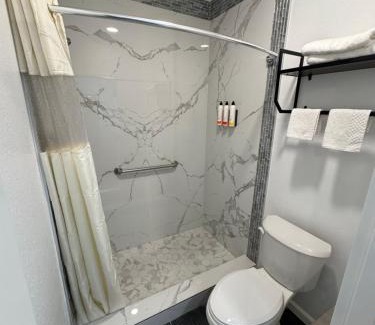 BathroomTowels, Toilet, Private bathroom, Toilet paper, ShowerGeneralSmoke Alarm, Key card access, Air conditioning, HeatingKitchenRefrigerator, MicrowaveLiving AreaDeskMedia & TechnologyFlat-screen TVBedroomLinensAccessibilityEntire unit located on ground floorRoom AmenitiesClothes rackPhysical distancingSingle-room AC for guest accommodation |