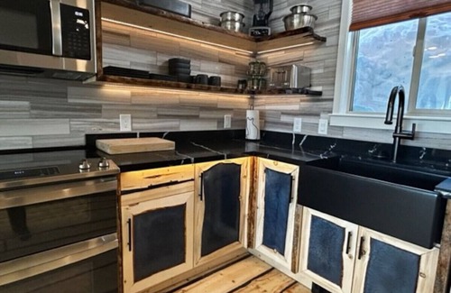 The designer floors will immediately capture your attention. Created and made by a craftsman here on the mountain showcases the talent of people who live here. The kitchen has all the applances you will need to make cooking fun while you are here.