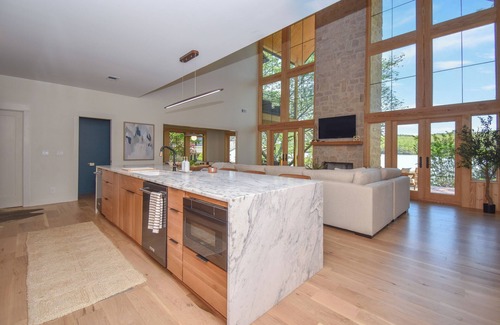 Welcome to Eagle's View at Lake Martin! This brand new construction lake home has 4 bedrooms, 3.5 bathrooms, an EV car charger, private beach, sleeps 16 people comfortably, and is the sister property to Eagle's Nest next door. From the moment you step into this home, you are greeted with nothing but luxury! The large designer kitchen is fully equipped for gourmet meals with beautiful stainless steel appliances, Caraway Cookware, an ice machine, a KitchenAid electric mixer, and a wine refrigerator in the pantry. There is plenty of seating along the beautiful marble kitchen island and in the dining room that is located just off of the living room.