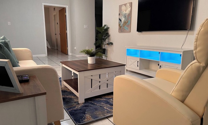 minutes away from the Casino and 9 minutes to the border of Mexico. This spacious place offers tranquility and comfort to the whole family! McDonald’s is walking distance about one block away. The two queen beds are super comfortable! We offer free hi speed WiFi, one tv in one bedroom and one tv in the living room to watch your favorite movies. Free parking for up to 2 cars.