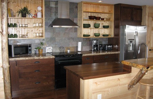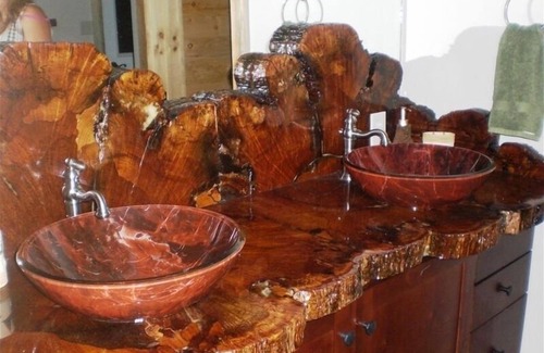 The master bedroom, with a king size bed, is a log lined masterpiece. It features its own double bowl, double shower master bathroom.