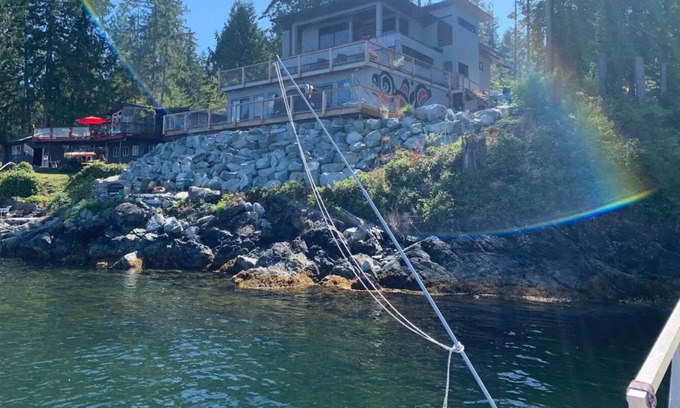 Private suite onto a huge deck overlooking Jervis Inlet and with the rocky front access to the ocean you can use our selection of water shoes with rubber soles ,a sturdy red canoe and text for paddles and life jackets fresh breakfast and a small fridge with small freezer to add your additional items you bring or there’s plenty of places to eat the cove restaurant is a 5-10 minute walk and a variety of other interesting restaurants ,pubs and fine dining .many hiking trails and the famous Skookumchuk Narrows also 420 friendly