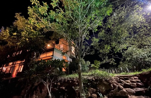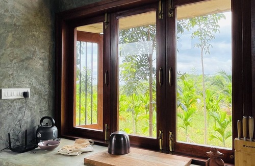 Get away from it all! Just 60 kms from Bangalore. Nestled among Mango, Neem ,Areca and many flowering trees is this Mud and Boulder house with pool. The land is in 5 levels and has multiple views. Owned by an Analyst and an Architect couple, care has been taken to create a free flow rustic design. From sunrise to sunset one can hear the sunbirds, babblers, parrots; see Kingfishers and expect morning visits by peacocks. The mud house is built with stabilised earth blocks made from excavated earth from the property. Boulders excavated from site have been utilised for foundation and landscaping. The house has a patio/living, open kitchen, reading room, toilet in ground floor. 3 bedrooms and 2 toilets are in the 1st floor that have huge windows overlooking the hills and the Arecanut plantation to the north. Discover this tranquil 3-bedroom farmhouse gem in Magadi. With 3 king beds, a cozy office space with a sofa bed, and essential amenities like a washing machine and WiFi, guests can relax and recharge in this retreat.