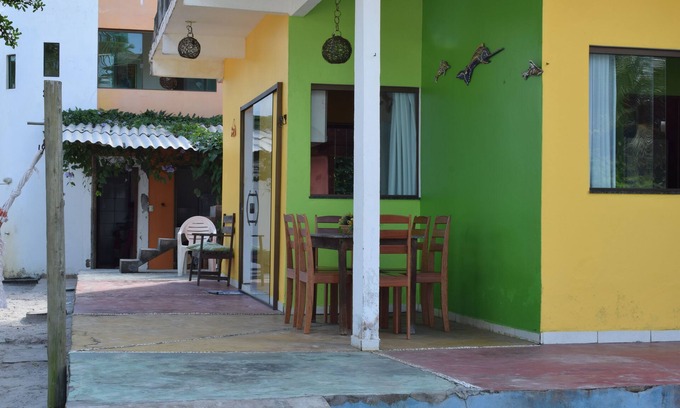 Choose your chalet ...! Dorms in suite, fully equipped kitchen, large balcony with tables and hammocks. Common areas to enjoy a barbecue among friends. Relax on the hammock, screen for volleyball or football on the beach. Here is great for kids; they can have lots of fun with no problems! You can surf, fish. Take a wonderful walk along the beach on foot or bike. Meet Ilhéus and Itacaré, the best place for a wonderful vacation !!