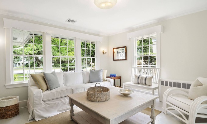 Each bedroom sleeps two: a king, queen, and two twin beds. Sink into new plush, pillow-top beds and linens, or curl up with a book and glass of wine on the generously over-sized couches in our living room and sun room. Our home features all new furnishings throughout. All floors are freshly lacquered white, and millwork beautifully restored to perfect your Hamptons beach experience.