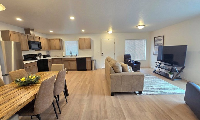 Welcome to a modern twist on rural living. Eastern Desert Chic is a 1200sq ft contemporary style, single level townhome in a new, centrally located development with easy access to restaurants, shopping and highways to help you navigate to the surrounding towns. Equipped with beautiful appliances, has an open floor plan, complete kitchen, Starlink internet, lots of natural light, fenced backyard, and handpicked comfortable furnishings.