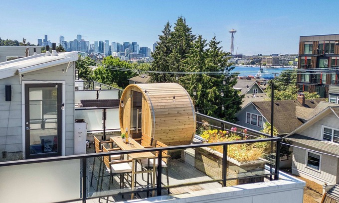 Eastlake Gem: Rooftop Sauna & Lake View, 3min SLU is located in Eastlake. Eastlake Gem: Rooftop Sauna & Lake View, 3min SLU provides accommodation, featuring Kitchen, Parking, TV, among other amenities. This House features Kitchen, Parking, TV, to make your stay a comfortable one.