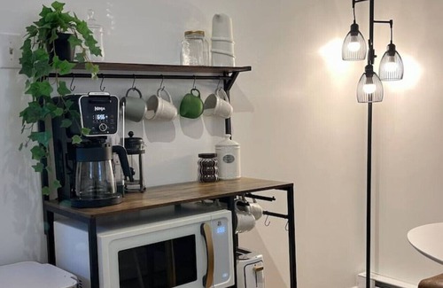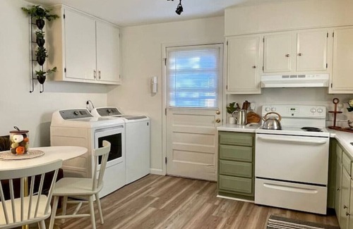 We’ve been told this is one of the most well-stocked kitchens, and is especially great for our guests who plan to stay a while. Coffee lovers will enjoy our Ninja coffee maker that offers single serve (K-cup), or carafe brewed, with several options including iced coffee! There is also a French press and tea kettle. You’ll find all that you need to make a home cooked meal. There is a small dining nook, with seating for four. We do provide some paper towels, and if you’re staying longer, you may need additional supply. There are some dishwasher pods to get you started, as well.