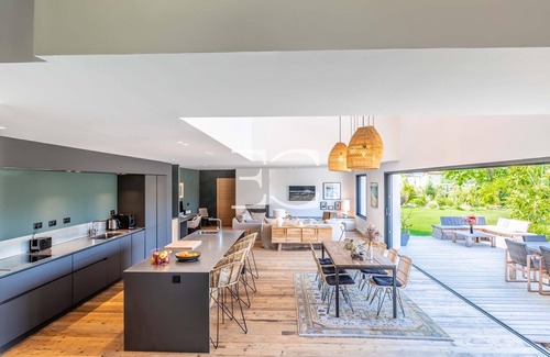Designed for family life or stays with friends, it's above all the generous volume, the beautiful light and the quality materials that have guided the owners' choice of layouts.