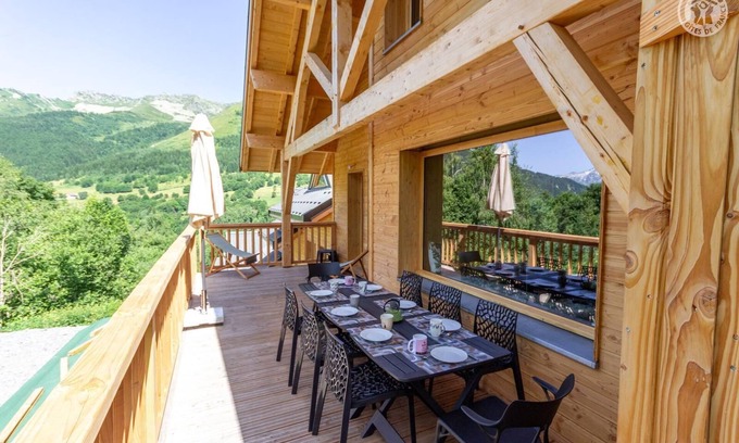 Individual chalet on 2 levels comprising on the ground floor: a living room-kitchen (multifunction microwave oven) lounge area (Smart television), separate WC, 1 bedroom (1 double bed 160x200 cm) with a private bathroom (shower). Upstairs: 3 bedrooms under the slope (2 single beds 80x200 cm / 2 single beds 80x200 cm / 2 single beds 80x200 cm), a bathroom (walk-in shower and 2 sinks), separate WC. Terrace. Parking at the entrance to the Village Gaulois then walk via stairs and footbridge through the chalets. Wooden chalet in a complex of chalets with shared facilities open summer and winter, including the free heated indoor swimming pool (8m x 8m, depth 1.50 m) and saunas (payable upon reservation on site). Access only on foot from the car park via stairs then a flat walkway. Large terrace of 22 m² facing south. Possibility of storing bicycles in a closed common room at the entrance to the Village Gaulois. Local shops at the Village Gaulois less than 200 m away or supermarket and all shops at La Chambre 12 km away.