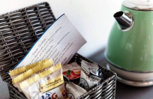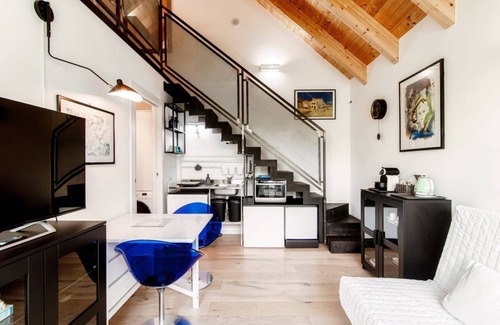 As soon as you enter, you are greeted by a bright and spacious living room, characterised by an open-space design that harmoniously integrates the living area and the kitchen. The sofa offers a comfortable space to relax, while the dining table for two is perfect for intimate lunches and dinners. The kitchen is equipped and complete with the latest appliances in the highest energy class (dishwasher, coffee machine, kettle, microwave and refrigerator).
