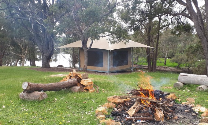 Exclusive furnished glamping tent on the banks of the Blackwood River.