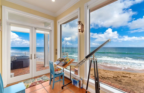 Eden Beach Retreat is a 7+BR/7BA Ocean-to-River beach-house paradise, perched high atop an oceanfront sand dune, & located directly on Stuart Florida's famed Eden Beach. The home is so close to the ocean waves that a small child can toss a tennis ball into the surf from the home's large oceanfront deck. And with 7+ bedrooms, 7 bathrooms (including 5 bedrooms w private en-suite bathrooms), this three-story retreat is packed with features to delight everyone in your family group, across all ages.