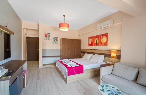 Eden Pyara Hotel Turunc features a seasonal outdoor swimming pool, garden, a private beach area and restaurant in Turunç. Providing a bar, the property is located within a 2-minute walk of Turunç Plajı. The property provides a 24-hour front desk, airport transportation, room service and free WiFi throughout the property. The units are equipped with air conditioning, a flat-screen TV with satellite channels, a minibar, a coffee machine, a bidet, free toiletries and a desk. Featuring a private bathroom with a shower and a hairdryer, some units at the hotel also have a city view. All guest rooms will provide guests with a closet and an electric tea pot. A continental, Asian or vegetarian breakfast is served at the property. Eden Pyara Hotel Turunc has a sun terrace. The area is popular for fishing and cycling, in addition, bike rental and car rental are available at this hotel. Marmaris Yacht Marina is 19 miles from the accommodation, while Aqua Dream Water Park is 11 miles away.