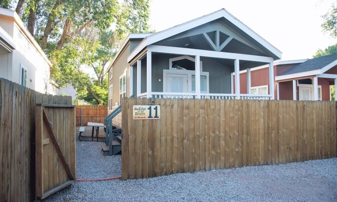 Hidden Canyon Cabin #11 is a cozy and fun desert escape just 1.5 miles from downtown Moab! Perfect for up to 4 guests, this stylish tiny home features a private king bedroom, queen pull-out sofa, and a playful loft with a king mattress and full futon. Enjoy a fully equipped kitchen, private deck, and all the comforts of home after a day of exploring Arches, Canyonlands, and Moab’s hidden gems. Whether you're relaxing under the stars or gearing up for adventure, Cabin #11 is your perfect home awa