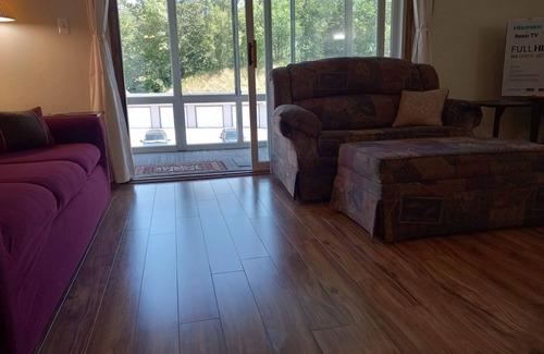 Clean, quiet condo with a sunroom. Less then a 5 minute walk to the 1 mile long public city beach, city park and restaurants. Indoor and outdoor pools with a sauna. Ski hill is about a 10 minute drive.