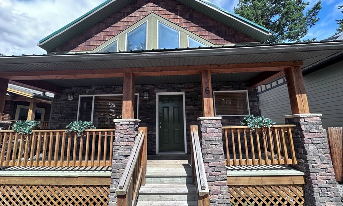 Welcome to our Alpine Escape, a cozy cabin nestled in the breathtaking landscape of British Columbia. Our cabin offers the perfect blend of rustic charm and modern comfort. Just a 5-minute drive to the relaxing Radium Hot Springs, and surrounded by stunning hiking trails. In the winter months, hit the slopes at nearby Panorama (40 minutes) or Kicking Horse (hour’s drive), making it the perfect base for skiers and snowboarders alike. Available for stays 30+ days. Our cabin features a spacious and thoughtfully designed layout, perfect for families or groups of friends. The primary bedroom upstairs offers a luxurious king bed, walk-in closet, and a private ensuite, giving you your own peaceful retreat. On the lower level, you'll find two cozy bedrooms: one with a queen-sized bed, and the other with two single beds, making it ideal for a family. The common area downstairs includes two pull-out couches that can double as extra sleeping spaces, offering plenty of flexibility for larger groups. Upstairs, the loft provides a relaxing spot to unwind, complete with a computer room where you can stay connected. The open-concept design allows you to enjoy the flow of the space, as the loft overlooks the main living area, where the kitchen and living room meet in a warm, welcoming atmosphere. Whether you're gathering for meals, cozying up by the fire, or spending time together in the loft, our cabin is designed for comfort and connection.