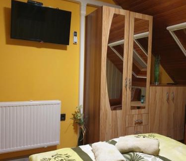 Edit Vendégház offers a garden and accommodations with a kitchen in Harkány, 17 miles from UNESCO World Heritage – Cella Septichora Visitor Centre. There's a private entrance at the guest house for the convenience of those who stay. The guest house provides rooms with air conditioning, free private parking, and free Wifi. At the guest house, units are fitted with a outdoor furniture. Each unit is equipped with a wardrobe and a flat-screen TV, and certain units at the guest house have a terrace. At the guest house, the units are equipped with bed linen and towels. Guests can make the most of the warm weather with the property's barbecue facilities. For guests with children, the guest house features a children's playground. Guests can also warm up near the outdoor fireplace after a day of cycling. Zsolnay Cultural Quarter is 17 miles from Edit Vendégház, while Pécs Cathedral is 17 miles from the property. Pécs-Pogány International Airport is 10 miles away, and the property offers a paid airport shuttle service.
