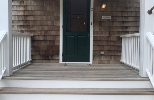 Keep it simple at this peaceful and centrally-located place. Hop off the train or Jitney with your carry-on and walk to this Village gem! Newly renovated 2BR; 1BA apt. within a 4-plex building with fully-equipped kitchen and living room. Walk out the front door to shops, restaurants, bars, park, and the free shuttle to area beaches! Private patio for outdoor dining or enjoying a glass of wine or morning coffee. Furnished impeccably with fine linens. Parking for one car in driveway.